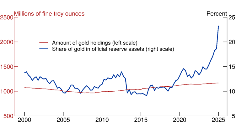 Figure: Share of gold in official reserves (market value as a percent of total reserves)