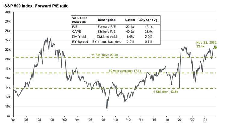 From a traditional asset allocation perspective, this macro environment would favour equities over bonds. However, U.S. equities are expensive, and certain segments—most notably artificial intelligence—exhibit characteristics of a potential bubble. While U.S. equities were already expensive last year, valuation concerns have shifted from expectation-driven multiples toward a requirement for tangible earnings and cash-flow delivery from AI-related investments.